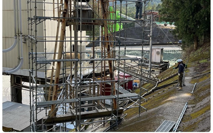プラント内のベルトコンベア支柱塗装